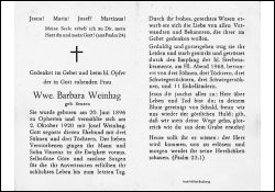 ∞ 2.10.1920 Josef Weinhag, †; 6 K.; Sohn Vinzenz †; (Kirchherten) |