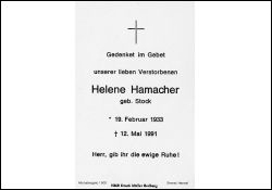 Hamacher, geb. Stock | Vorname: |