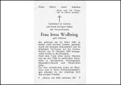 Nach dem Tod ihres Mannes seit 1939 in geistlichen Haushalten in Kirchherten, Frielingsdorf, Düsseldorf-Heerdt u. Neukirchen tätig |