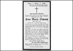 ∞ 3.8.1919 Martin Schmitz aus Nohn; 4 K., davon Tochter Adele † 17.7.1943 (Nohn) |