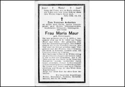 ∞ 9.9.1905 Franz Maur aus Nohn; 9 K., davon 3 Söhne † (davon 2 im 2. Weltkrieg gefallen); 2 Söhne in Rußland vermißt |