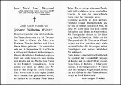 Eltern: Theodor Wilden u. Anna Maria geb. Wirtz; ∞ 2.9.1919 in Warth a.d.Sieg Elisabeth Siebenmorgen; 6 K., davon 3 †; 46 J. Mitgl., 35 J. Vorsitzender d. Kirchenchores |