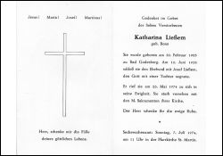 ∞ 16.6.1928 Josef Ließem; 1 Tochter (Muffendorf) |