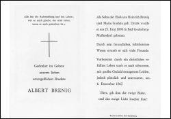 Eltern: Heinrich Brenig u. Maria Gudula geb. Drenk; schweres Leiden |
