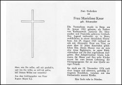 Eltern: Rechtsanwalt Dr. Schumacher u. Franziska geb. Limbach; ∞ 29.8.1925 Alexander Knur aus Trier; 51 J. Ehe; 6 K.; Adoptivtochter Gisela Lohmann |