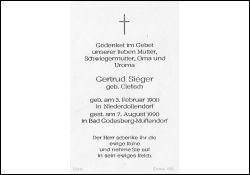 Sieger, geb. Clefisch | Vorname: |
