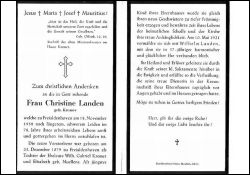 Längeres Leiden; Eltern: Wilhelm Gabriel Kremer u. Elisabeth geb. Nuellens; ∞ 10.5.1921 Wilhelm Landen |