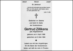 Zillikens, geb. Nagelschmidt | Vorname: |