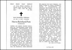 Gutsbesitzer; Tod durch Unglücksfall auf seinem Gutshof; Eltern: Johann Pott u. Elisabeth geb. Schulte-Tenderich; ∞ 25.3.1944 Mathilde Ewers aus Dahl b. Paderborn; 5 K., davon 2 früh † |