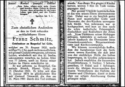 Gutsbesitzer zu Bergerhof b. Gohr; ∞ 31.1.1874 Gertrud Dünwald, † 26.3.1901; 6 K., davon 3 †; Gemeindevorsteher; Mitgl. Bürgermeistereirat, Kirchenvorstand |