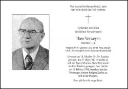Direktor i.R.; ∞ 27.3.1940 Agnes Schreurs; 5 K.; Mitgl. St.-Quirinus u. St.-Anna-Bruderschaft; Ehrenmitgl. St.-Johannes-Bruderschaft |