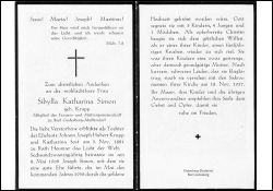Eltern: Johann Joseph Hubert Krupp u. Katharina geb. Sost; ∞ 8.5.1908 Joseph Simon; 5 K., davon 1 früh †; Mitgl. Frauen- u. Müttergemeinschaft Bad Godesberg-Muffendorf |