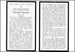 Eltern: Wilhelm Latz u. Elisabeth geb. Klemmer; ∞ 19.9.1903 Anton Klemmer in Muffendorf; 5 K., davon 1 früh †, 3 Söhne im 2. Weltkrieg gefallen; durch Beruf des Gatten 34 J. von Heimat fern; 1946 zurück n. Muffendorf |