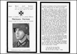 Gefallener 2. Weltkrieg; Eltern: Wilhelm Hermes u. Margarete Hölscher; Schreinerhandwerk; ∞ 14.2.1939 Martha Menzebach; 1 Tochter; 1940 Einberufung; beerdigt in Taganrog (Langenfeld-Reusrath) |
