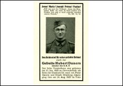 Gefallener 2. Weltkrieg; Eltern:Dr. med.vet. Peter Daners u. Elisabeth geb. Hömberg, † 24.8.1925;städt. Oberschule in Monchau; 25.8.1943 Einberufung, am 22.6.1944 schwer verwundet |