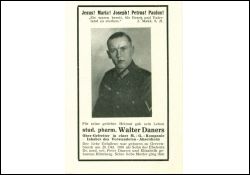 Gefallener 2. Weltkrieg; Eltern: Dr. med. vet. Peter Daners u. Elisabeth geb. Hömberg, †24.8.1929; stud. pharm. in Marburg; Mai 1944 Einberufung; Bruder Hubert gefallen am 25.6.1944 im Osten |