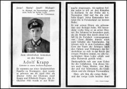 Gefallener 2. Weltkrieg; Eltern: Josef Krapp u. Elisabeth geb. Degen; 10.10.1941 eingezogen; 2 Brüder dienen zum Schutz des Vaterlandes |