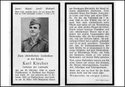 Gefallener 2. Weltkrieg; ∞ 22.3.1932 Margarete Kranz aus Dormagen-Rheinfeld; 3 K.; 7.1.1940 einberufen; Heldenfriedhof in Mineralnyje Wody, am Fuße des Kaukasus |