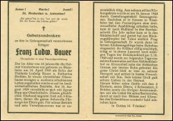 Opfer 2. Weltkrieg; Eltern: Ludwig Bauer u. Katharina geb. Bodden; ∞ 16.8.1939 Agnes Ripp aus Oberbolheim; 3 K.; 15.1.1943 Gestellungsbefehl; bei Tabor, südl Prag Gefangenschaft; Bahnbau im Kaukasus |