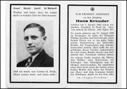 Fast 22 J.; fiel einem tragischen Geschick zum Opfer (Opfer 2. Weltkrieg); Eltern: Philipp Kreuder u. Gertrud geb. Dols; 2 Brüder bereits im 2. Weltkrieg gefallen |