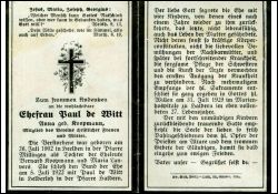 Eltern: Bernard K∞pmann u. Maria geb. Lanvers; OO 5.7.1922 Paul de Witt in Helderloh, Pfarre Haldern; 4 K., davon 2 †; die schwere Geburt des verstorbenen letzten Kindes ließ sie unheilbar erkranken |