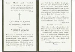 Junggeselle; Landwirt in Blatzheim; Eltern: Christian Hamacher u. Margarete geb. Gleuel |