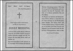 Eltern: Ehrenbürgermeister Wilhelm Meising u. Wilhelmine geb. Gymnich; OO 24.9.1907 Ella Hilden; 1 Tochter |