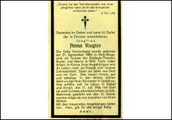 Jungfrau; Eltern: Theodor Ruyter u. Maria te Witt; in den letzten Jahren lebte sie b. Schwester in Speldrop |