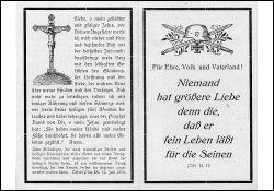 Gefallener 2. Weltkrieg; Eltern: Johann u. Anna Margarete Baus; Landarbeiter; 1.5.1940 Einberufung (Geyen) |