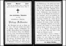 Jüngling; Teilnahme 1. Weltkrieg; kehrte krank in die Heimat zurück (Opfer 1. Weltkrieg) |