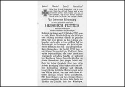 Gefallener 2. Weltkrieg; Tod im Herbst 1944; nach Schulentlassung als Bäcker in Pulheim tätig; Brüder Christian und Winand ebenfalls gefallen, Vater † (Geyen) |