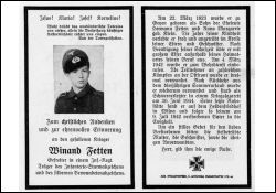 Gefallener 2. Weltkrieg; Eltern: Hermann Fetten u. Anna Margarete geb. Klein; 4.3.1942 Einberufung; viermal verwundet; Heldenfriedhof in Wilna; Vater † 9.7.1942 |