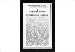 Langes, schmerzvolles Krankenlager; ∞ 9.1.1864 Philipp Godenau zu Geyen, † 24.6.1901; 5 überlebende Kinder |