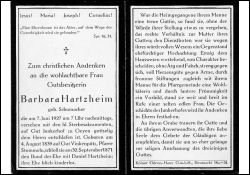 ∞ 30.9.1871 Daniel Hartzheim; kinderlos; fand das rechte Verhältnis zur Mutter ihres Gatten; fromme Stiftungen mit ihrem Mann für Pfarrgemeinde |