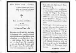 Eltern: Peter Josef Horatz u. Apollonia geb. Kemmerling; Landwirt; ∞ 7.6.1941 Elisabeth Kessels; 3 K., davon 1 früh †; Mitgl. Kirchenvorstand u. St. Cornelius-Schützenbruderschaft; längere Krankheit |