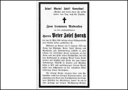 Schlaganfall; Eltern: Peter Josef Horatz u. Apollonia geb. Kemmerling (Kemmling); Landwirt; zeitlebens im elterlichen Hause; 4 Geschwister trauern (Geyen) |