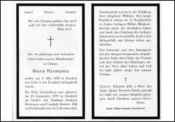 Eltern: Andreas Hermanns u. Cordula geb. Küsters; Schlaganfall; Haushälterin in Elsdorf, dann Gindorf |