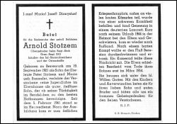 Gefallener 2. Weltkrieg; Eltern: Peter Stotzem u. Maria geb. Brenseler; ertrunken beim Versuch, die Beresina zu durchschwimmen; Todesnachricht erst im März 1954 |