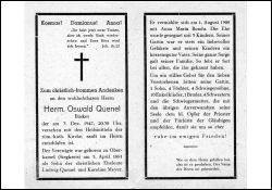 Bäcker; Eltern: Ludwig Quenel u. Karoline geb. Meyer; ∞ 1.8.1908 Anna Maria Bondu; 5 K. |
