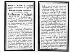 Jungfrau; Eltern: Anton Kleefisch u. Anna Gudula geb. Müller; Mutter starbn früh, fand 2. Mutter in Maria Tölles; kam nach Schulzeit in Haushalt ihrer Verwandten in Niehl |