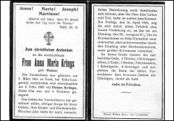 ∞ 2.2.1885 in Esch Heinrich Krings; 4 Töchter; Tod infolge Fehltritt mit innerer Verletzung |