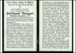 Schlaganfall; Eisenbahn-Lademeister a.D.; ∞ 2.2.1895 Maria Katharina Keller, † 1918; über 40 J. b. d. Eisenbahn; Mitgl. d. Kirchenvorstandes, im letzten Jahr Schützenkönig; 8 überlebende Kinder |