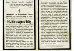 Fräulein; Eltern: Peter Bulig u. Anna Maria geb. Wilkens; Taufe in Blatzheim; mehr als 28 J. Mitgl. d. Marian. Kongregation |