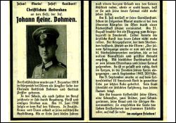 Gefallener 2. Weltkrieg; Eltern: Gottfried Dohmen u. Gertrud geb. Peiffer; 14.6.1940 Einberufung; 8.7.1942 durch Rückenschuß schwer verwundet; mit Flugzeug ins Lazarett Smolensk; Heldenfriedhof III Smolensk |