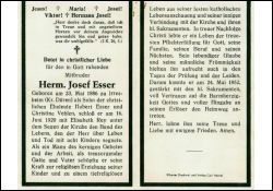 Eltern: Hubert Esser u. Christine geb. Vehlen; ∞ 16.6.1920 Elisabeth Rey; 8 K. |