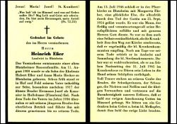Landwirt; Eltern: Hubert Eßer u. Anna Maria geb. Hecker; ältester Bruder im 1. Weltkrieg 1917in Flandern gefallen; übernahm 1936 mit jüngerem Bruder Hof des Vaters; ∞ 13.7.1946 Margareta Färber, † 25.9.1954 |