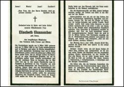 Vater † 4.3.1914; ∞ 14.5.1927 in Blatzheim Barthel Glasmacher aus Bergerhausen; 2 K.; lebte in Köln-Deutz u. Köln-Bayenthal; Vater mußte 1939 in den Krieg; wegen der Bombenangriffe aus Köln in Heimat |