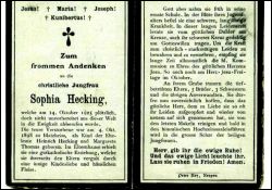Jungfrau; Eltern: Heinrich Hecking u. Margarete geb. Thomas; schwere, langjährige Krankheit |