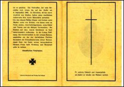Gefallener 2. Weltkrieg; Bruder Reiner am 5.8.1941 bei Kiew gefallen; schon 1941 an russische Front; Grab in Grischino, 60 km nordwestl. v. Stalino |
