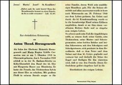 Eltern: Heinrich Herzogenrath u. Maria Regina Sybilla geb. Cremerius; ∞ 7.10.1918 in Köln-Ehrenfeld Margareta Bauer aus Blatzheim; Tochter Sylvia |